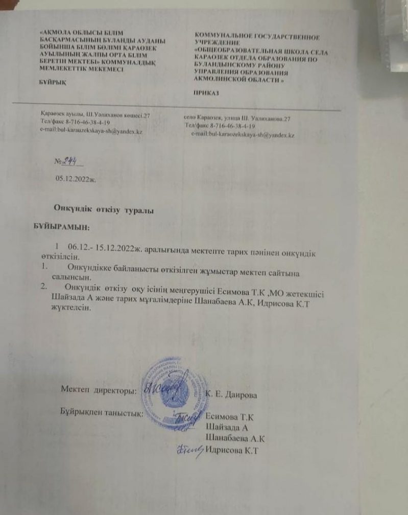 Коммунальное государственное учереждение "Общеобразовательная школа Караозек отдела образования по Буландынскому району управления образования Акмолинской области"