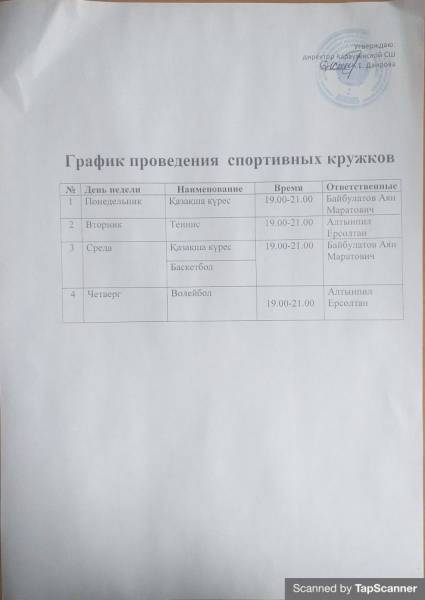 График работы кружков