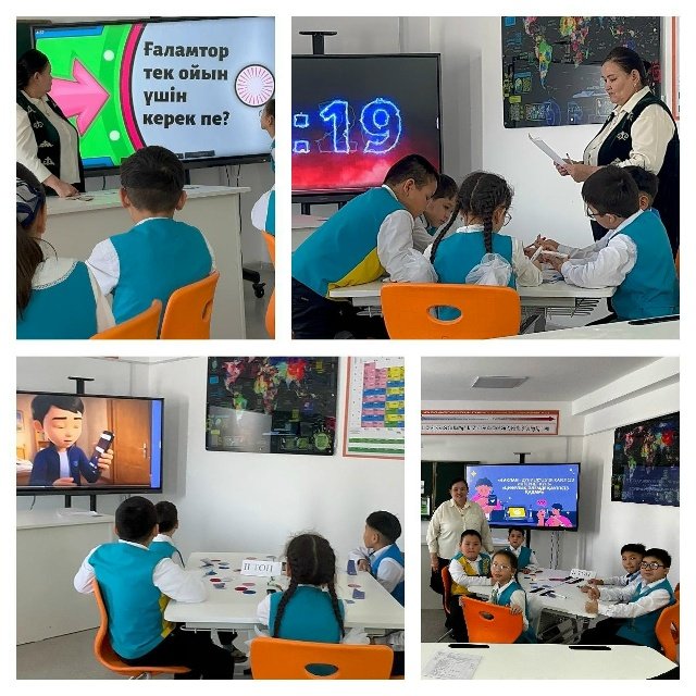 Біртұтас тәрбие аясында "Цифрлық әлемде қауіпсіз қадам" сынып сағаты 4А сыныбында өтті .Оқушылар өте белсенді қатысты.