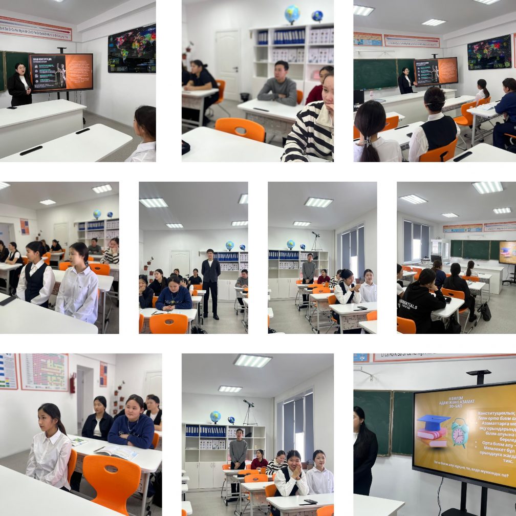 Мектебімізде «Білім беру саласындағы құқықтық қатынастарда Конституция нормаларын қолдану» тақырыбында пікірталас өткізілді. Іс-шараға 9–11 сынып оқушылары белсенді қатысты. Қатысушылар білім алу құқығының жүзеге асырылуы мен оның маңызын талқылады. Пікірталас оқушылардың құқықтық сауаттылығын арттыруға ықпал етті.